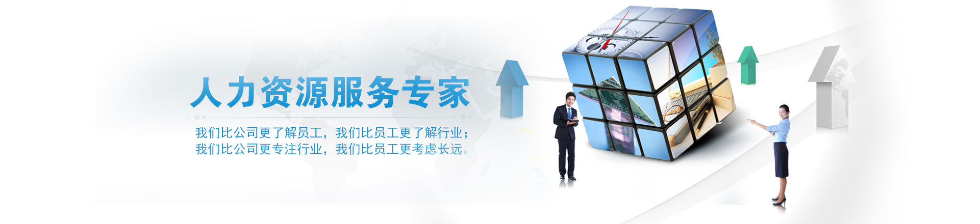 ?????我們將根據各企事業單位的需求,提供優質的人力資源外包服務。在面向二十一世紀的今天,我們將與時俱進的順應國際化人力資源發展趨勢,創新、超越、不斷進取,以我們的專業為客戶創造更大的價值,追求與客戶共同展開騰飛的雙翼,努力創造明日的輝煌。